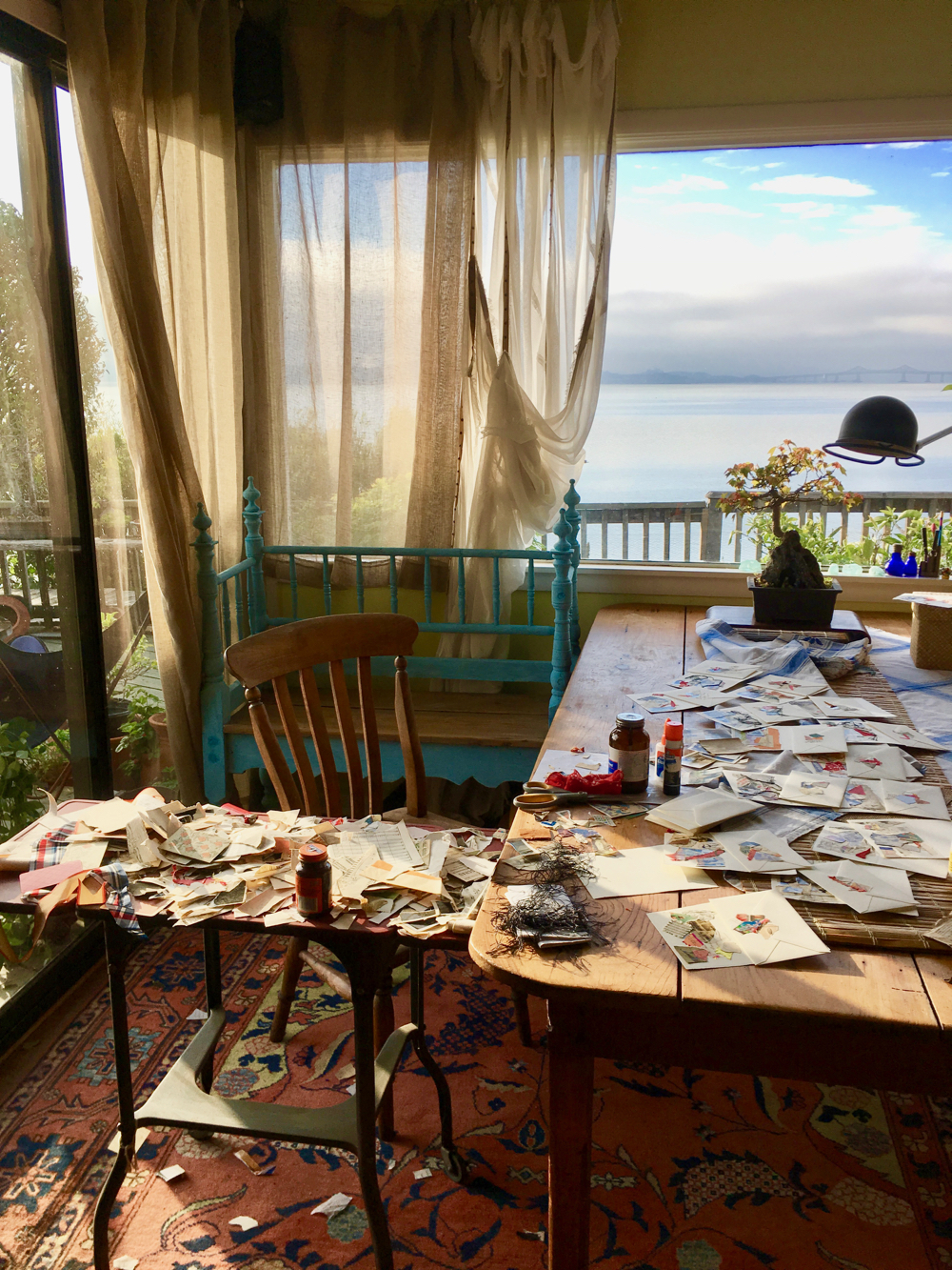 Here’s the main thing about shopify and boxify, canva and campaign monitor and all the other programs and apps for making it all happen: we are living in a brand new constantly changing world of technology, both with milestones and limitations daily. Each day we can render something possible, that wasn’t yesterday. When I close my computer at the end of the day….a day where I didn’t have the pleasure of designing an interior project or stitch the trim on a bag or sand a wood surface smooth for painting or re-wiring a lamp…..I’ve gotta love fixing a program glitch. I find satisfaction in the help given to me by people smarter than me. They bend me and shape me into a tech savvy user. I read help pages and search forums as comfortably as making my morning coffee. Sometimes it’s terribly boring and tedious to say the least, yet I know the reward in doing it, lies close behind. It’s impossible to do what I have done without reaching in and appreciating the technology that is truly magical. I live in and around it everyday…especially the nerdy kids bopping along the streets of SF, clutching their phones, plopping their brains behind screens all day, making it possible for me to create a place to sell and teach and learn. They help me when I’m the only senior in the meetup with my hand up! How lucky to live in a place where I can keep building new things and stretching my brain. What one program can’t do, another crew of brainy kids can. Whether it’s configuring the size of a box to hold many boxes or attaching graphics to an instagram post or keeping track of who went where and what they found there. At the end of a frustrating day, when one small glitch takes me inside the maze and back, I stand awed by what is possible on a world wide stage. That I can take an old lamp, make a custom shade for it, photograph it, write a little story about it and show the world….. that is what I call remarkable.